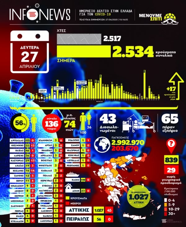 Децата, които по специална причина не могат да посещават училище, ще продължат да бъдат подпомагани чрез дистанционно обучение. Основните училища и детските градини ще останат затворени до второ нареждане като може би да отворят на 1-ви юни, в зависимост от хода на пандемията в страната , като премиерът подчерта, категорично повтаряйки “може би”. Очаква се утре да дадат повече подробности от образователната министърка, която в 18:00 местно време ще даде брифинг заедно с Г-н Циодрас.