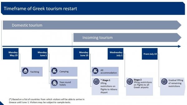 Понеделник, 25 юни: Отварят всички останали хотели и курорти. На същия ден започва първата фаза на вдигане на забраните за международни полети, като се запазва изискването всички самолети да кацат само и изключително на летището в Атина